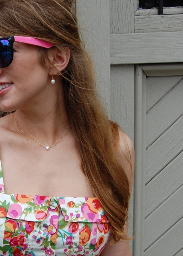 Gold-filled or sterling silver necklace with single pearl. 16" L