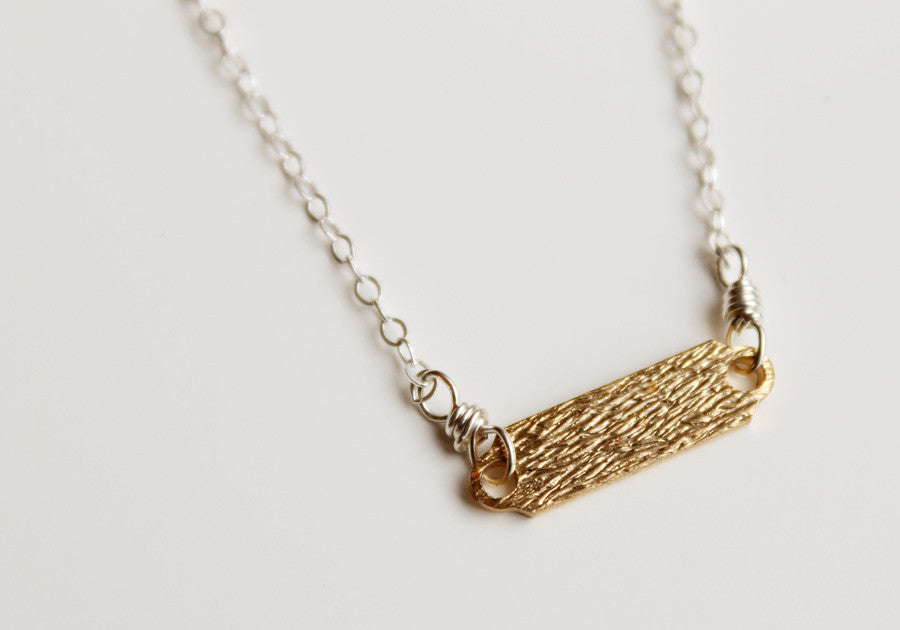 Gold-filled or sterling silver necklace with vintage brushed tab detail. Limited supply. 17" L